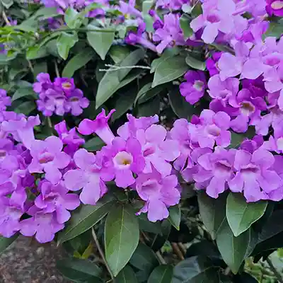 Smells like garlic, but looks way prettier with those big purple flowers all over. Grows like it’s in a race, blooms a few times a year, and native to South America but fits right into Indian heat.