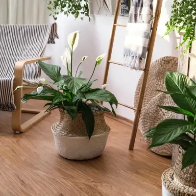 Soft white blooms set a calm tone. The Peace Lily supports cleaner indoor air plus easier breathing. It works well in low light and is easy to maintain.